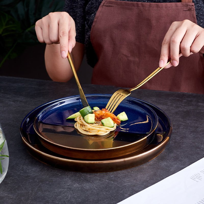 The Lenox Dinnerware Set is made with fine porcelain that will add beauty to any kitchen. This stylish collection is entirely on-trend and features sleek design elements that draw subtle attention. Featuring a blue with gold color combination, it will surely be a crowd favorite!