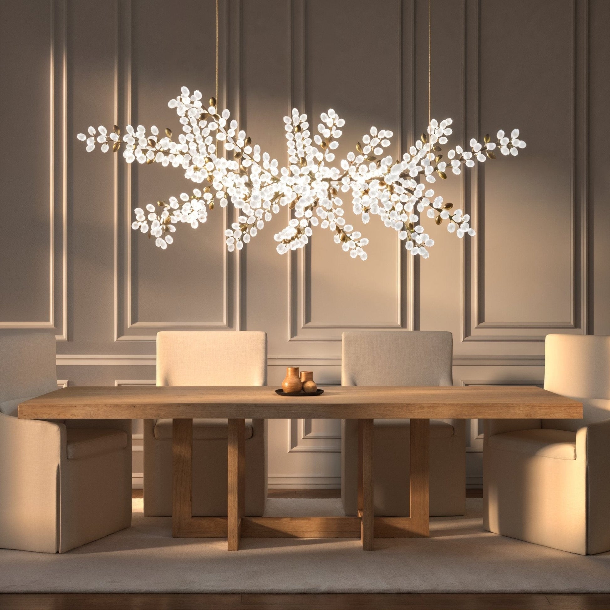 A luxurious upholstered dining chair with a modern & unique design. The details are there for those who look for it.