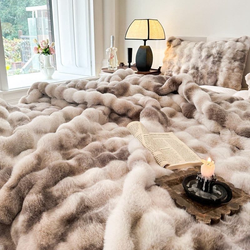 This throw is a luxurious pleasure to wrap yourself in. It is elevated to resemble real rabbit fur. It is incredibly soft to the touch and lined on both sides.