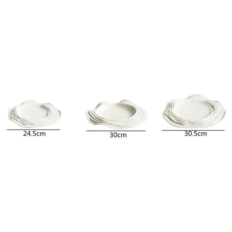 The White Waves Plate Collection is an exquisite addition to any table setting. Crafted from high-quality ceramic material, these plates have a unique design resembling waves surrounding an island.